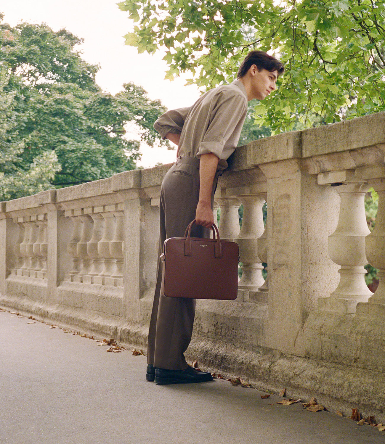 Émile ist eine vollständige Linie mit architektonischem und grafischem Design sowie moderner Konstruktion. Die gesamte Émile-Linie zeichnet sich durch ihren abnehmbaren Anhänger mit Etikettenhalter und den verstellbaren Schulterriemen aus.