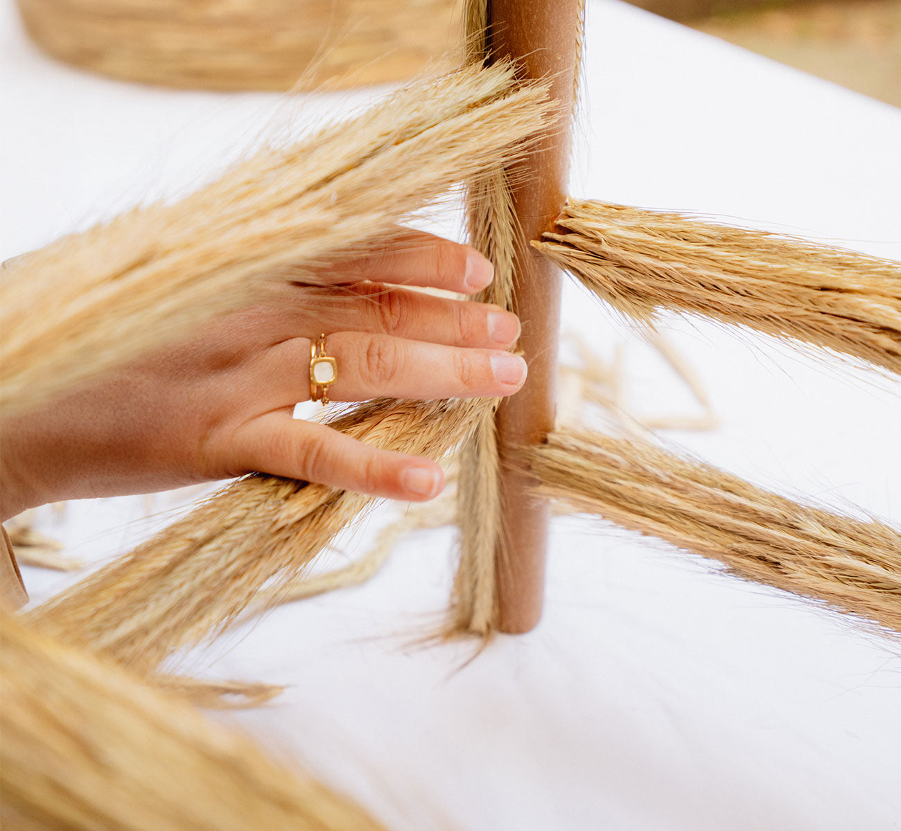 It offers countless creative possibilities: fine cords, baskets, garments, intricate embroidery, and bouquets. Straw also resonates with me as a symbol of rural life. My grandparents were farmers, and I spent much time on their farm—those memories feed my creativity.