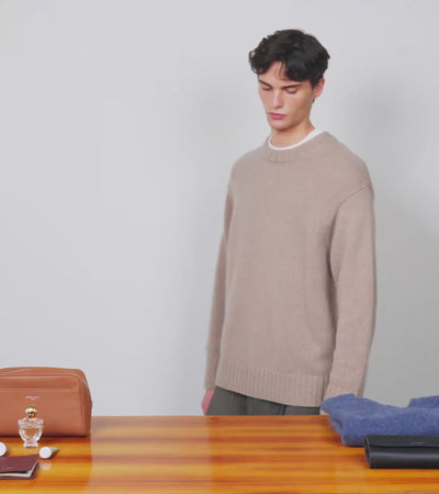 Sac de voyage 48h avec poignées rigides, porte-étiquette amovible et bouclerie gravée signature. Porté main, épaule ou croisé avec sa bandoulière ajustable amovible.